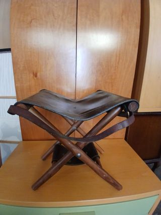 Elegante silla plegable de caza, elaborada en cuero. - Diseño portátil y fácil de transportar. - Iniciales grabadas en el cuero.