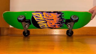 Tabla de skate de la marca Santa Cruz con un llamativo diseño. - Color verde vibrante. - Gráfico con detalles en naranja y morado. Como nuevo, apenas uso