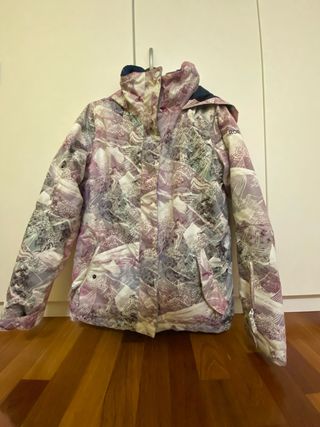 Chaqueta de esquí con un diseño estampado. La prenda se encuentra en un excelente estado, ya que no ha tenido casi uso. Cuenta con dos bolsillos laterales, uno en una la manga para el forfait y otro dentro de la cazadora. Envío disponible.