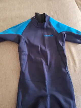 Neopreno de manga corta para niño de la marca Olaian.Con poco uso.Talla 10 años - Color azul marino y azul claro. - Cuello redondo. - Costuras planas.