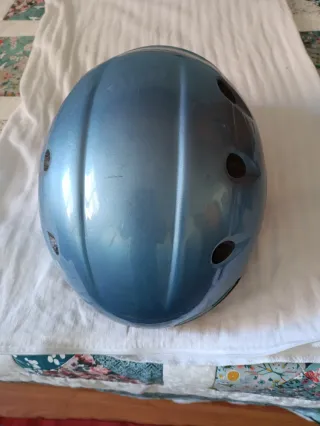 Casco de esquí de color azul, talla M. Diseñado para proteger durante la práctica de deportes de invierno. - Color azul vibrante. - Talla M. - Correa de ajuste amarilla. - Acolchado interior negro.