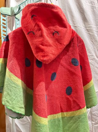 Poncho toalla con capucha para bebé, ideal para la piscina o la playa. Su diseño divertido de sandía hará las delicias de los más pequeños. - Diseño estampado de sandía. - Capucha integrada. - Material suave y absorbente.
