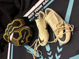 Botas de fútbol Nike de color beige con cordones. - Diseño de color beige con su logo en negro, Nike, en los laterales. - Material sintético, originales. de la marca. - talla 34 35