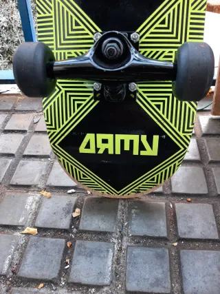 Sakate / patin con diseño llamativo y moderno se ilumina en la oscuridad - Tabla con gráficos de lobo y patrones geométricos. - Marca OXELO. - Modelo ARMY.