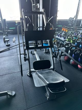 Máquina de gimnasio Bodytone con poleas y pesas. - Diseño robusto y funcional. - Estructura metálica. - Poleas ajustables en altura.
