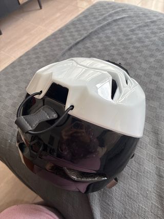 Casco de esquí con un diseño moderno y bicolor. - Parte superior blanca brillante. - Parte inferior negra. - Acolchado interior. - Sistema de ventilación.