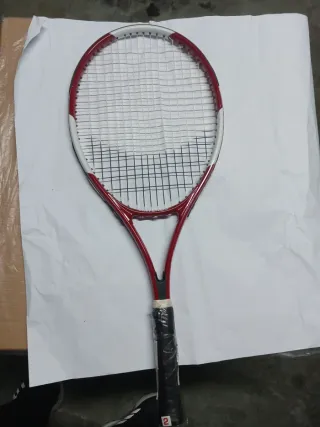 Raqueta de tenis Artengo TR700 en color rojo y blanco. - Marco de color rojo con detalles blancos. - Cuerdas blancas y negras. - Empuñadura negra con logo blanco.
