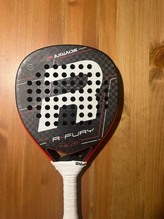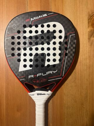 Características y Tecnologías de la Royal Padel Fury 2025 Marco: Doble tubular bidireccional, 100% de Carbono 3K 3D Hexcel Twill Aeronautical. Núcleo: Goma Eva Mid Hard que brinda un toque firme para golpes controlados y potentes. Superficie: Total Rough Spin, para un agarre excepcional y facilidad para generar efectos. Forma: Diamante Oversize, ampliando el punto dulce para mayor potencia. Peso: Rango de entre 365 y 380 gramos.