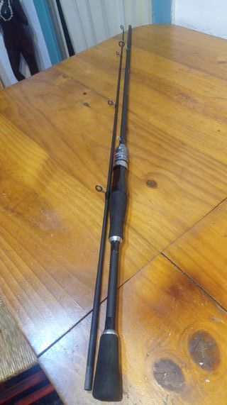 Caña de pesca de color negro. - Longitud: 180 cm. - Rango de señuelo (lure): 8-25 gramos. - Rango de línea (line): 9-16 lb.