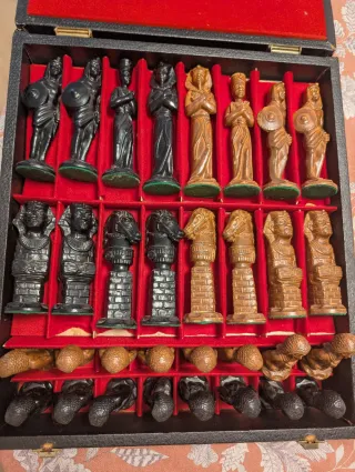 Set de ajedrez con temática egipcia, ideal para coleccionistas y amantes del juego. - Piezas de ajedrez con diseño inspirado en la cultura egipcia. - Incluye todas las piezas necesarias para jugar.