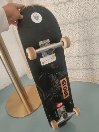 Skateboard con señales de uso. - Tabla con diseño. - Ruedas y ejes incluidos.
