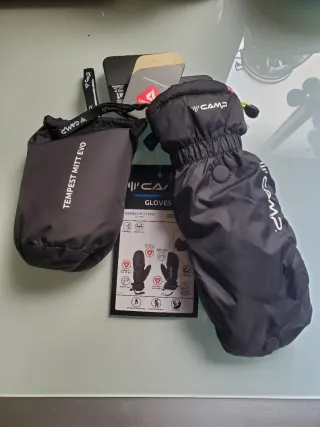 Las Tempest Mitt Evo son unas manoplas de la marca Camp. Las Tempest Mitt Evo ofrecen un calor constante y son muy cómoda para las manos. Una abertura en la unión de los dedos permite sacarlos para realizar manipulaciones delicadas, como los nudos de la cuerda o el ajuste de las fijaciones. Un sistema de imanes mantiene la solapa en su sitio sin perturbar tu maniobra. La Tempest Mitt Evo está equipada con el acolchado Primaloft Gold que permite que el guante conserve el calor, proporciona buena flexibilidad y tiene un material repelente al agua en la parte superior.