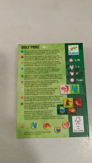 Juego de estrategia y cooperación Wolf Panic de Djeco. Ideal para jugar en familia. - Ilustraciones coloridas y divertidas. - Diseñado para 2 a 4 jugadores. - Edad recomendada: 6-99 años.