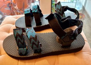 Sandalias diseñadas para deportes de montaña (trekking, senderismo, etc.), también perfectas para la playa o el día a día. De color negro con detalles de color. De talla amplia pues al adaptar la medida de todas las cinchas con velcro, se puede asegurar el pie perfectamente (la planta cubre perfectamente el 46). Está prácticamente nueva a estrenar, en perfecto estado. Ver en mi perfil otras prendas para montaña y vestir.