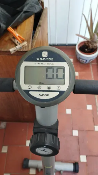 Bicicleta estática para ejercicio en casa. - Sillín con diseño ergonómico. - Pantalla digital para seguimiento de ejercicio. - Pedales con agarre. - Estructura gris y negra.