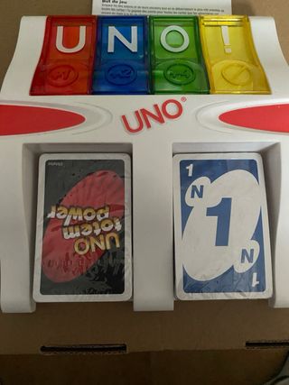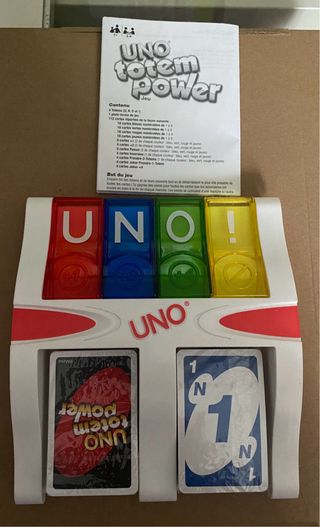 Juego de cartas UNO Totem Power. Incluye el tablero y las cartas. - Tablero con compartimentos para las cartas. - Cartas de juego UNO. - Instrucciones incluidas.Sin caja