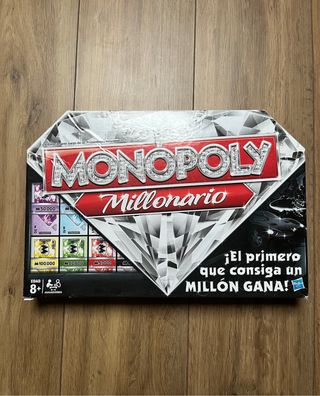 Edición del clásico juego Monopoly con temática millonaria. ¡El primero que consiga un millón gana! - Juego de mesa Monopoly Millonario. - Edad recomendada: 8+ años. - Para 2 o más jugadores.