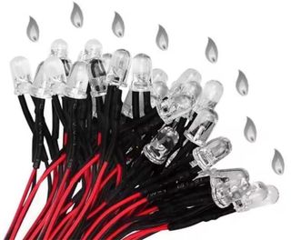 Conjunto de 5 LEDs con efecto de llama, ideales para proyectos de iluminación decorativa en belenes, dioramas, maquetas, etc - Disponibles en color rojo, naranja, verde, azul, amarillo o blanco. - Tamaño: 5mm - Voltaje: 9V y 12V