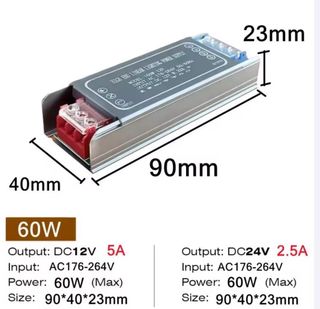 Fuente de alimentación lineal con entrada AC de 175V a 265V y salida DC de 12V, ideal para alimentar luces LED en belenes, dioramas, maquetas, etc - Potencia: 60W (Máx) - Entrada: AC 176-264V - Salida: DC 12V 5A - Dimensiones: 90x40x23mm