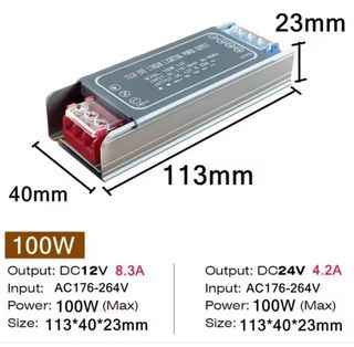 Fuente de alimentación lineal con entrada AC de 175V a 265V y salida DC de 12V, ideal para alimentar luces LED en belenes, dioramas, maquetas, etc - Modelo: 100W 12V - Entrada: AC 176-264V - Salida: DC 12V 8.3A - Potencia máxima: 100W - Dimensiones: 113*40*23mm