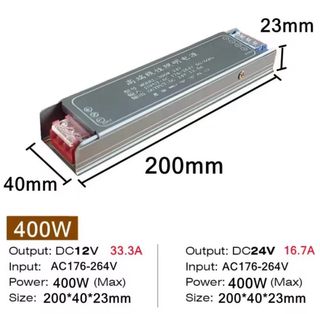 Fuente de alimentación lineal con entrada AC de 175V a 265V y salida DC de 12V, ideal para alimentar luces LED en belenes, dioramas, maquetas, etc Diseñada para ofrecer un rendimiento estable y eficiente. - Potencia: 400W (Máx.) - Entrada: AC 176-264V - Salida: DC 12V / 33.3A - Dimensiones: 200 x 40 x 23 mm