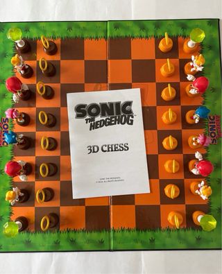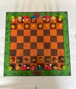 Tablero de ajedrez temático de Sonic the Hedgehog. - Diseño con personajes y elementos icónicos de Sonic. - Incluye piezas de ajedrez. - Tablero con diseño de ajedrez 3D. la caja alguna esquina está un poco rozada ( si quieres más fotos pídelas)