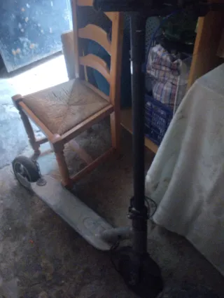Patinete eléctrico en buen estado. - Color gris. - Rueda delantera. - Plataforma para pies. Solo le tenéis k poner la batería y arreglar el cable del motor dnd va la centralita