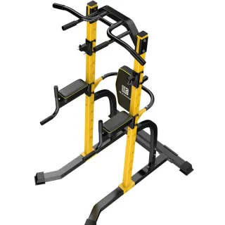 Equipo de gimnasio multiusos en color amarillo y negro. Incluye varios accesorios para complementar tu entrenamiento. - Estructura robusta de acero. - Asientos acolchados. - Barras de agarre ergonómicas. Util para, dominadas / pullups, dips, ejercicios de abdominales, pecho, espalda Cualquier pregunta respondo sin problema Venta por falta de espacio en nuevo departamento, Original a €450 lo vendo a €100 menos, dispuesto a negociar
