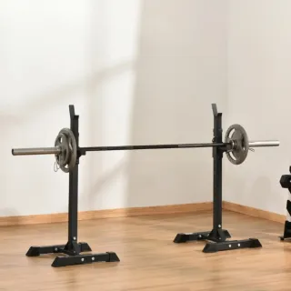 Soporte para barra de pesas. - Construcción robusta de metal, con una capacidad de 400 kilos. - Superficie acolchada para proteger la barra.