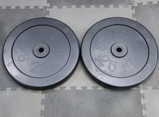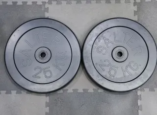 Vendo discos pesas de metal cubiertos de caucho de 25kg marca Salter, diámetro 30 mm. Hay 2 discos en total, valen 125€ en total. Palabras clave: Discos, powerlifting, pesas, banco, barra, mancuerna,, fit, bodybulding, fitness, crossfit, dechatlon, multifuncion, máquina, polea, jalón, fitness, bodypump, musculacion, ejercicio físico,
