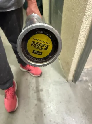 Barra de competición BOXPT de 15 kg, ideal para entrenamientos de crossfit. Se encuentra en buen estado. - Marca: BOXPT - Peso: 15 kg - Tipo: Barra de competición - Apta para atletas