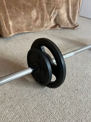Buenas! Os detallo todo lo necesario para que no haya ninguna duda: Discos de vinilo en perfectas condiciones Precio original: 163,89 € Medida barra 1’70 4 discos de 1’25 Kg 4 discos de 2’25 kg 2 discos de 5 Kg 2 discos de 10 kg Incluyendo el peso de la barra y el de cada mancuerna el peso total es de 60 Kg que es lo que especifica el fabricante. Adquirido en 2025; lo vendo porque ya voy al Gym. Regalo rodillo masaje que veis en la foto RECOGIDA EN EL CARMEL NO ME DESPLAZO POR NO TENER VEHÍCULO ACEPTO SOLO PAGOS POR BIZUM O POR WALLAPOP POR MALAS EXPERIENCIAS NO RESERVO Gracias por tomarte el tiempo en llegar hasta aquí ;)