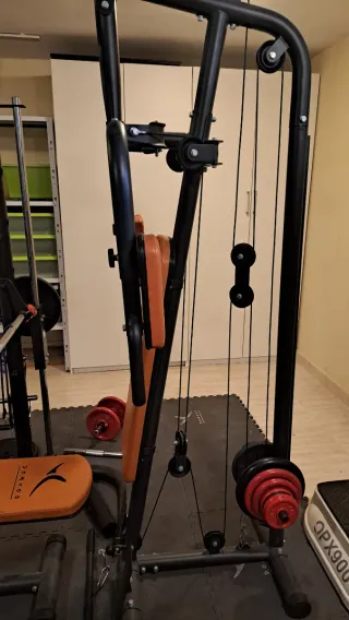 Equipo de gimnasio multifuncional para entrenar en casa. - Incluye banco de pesas. - Barra con discos. - Máquina de poleas. Todo lo que se ve en foto entra en el precio Más información 625827090