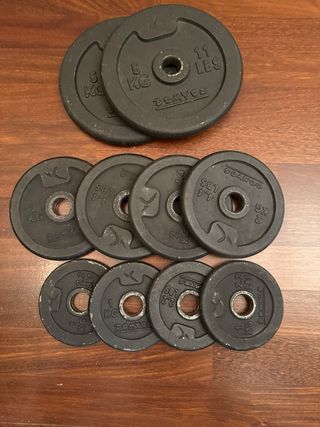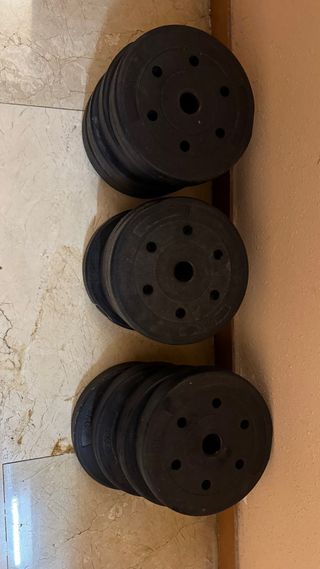 12 discos de pesas, precio total 30€