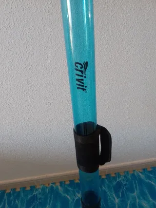 Barra de fitness con dos asas para entrenamientos versátiles - Dos asas negras. - Tubo transparente rellenable con agua -dos acoples para mayor peso - Tapones negros en los extremos -peso de la barra ajustable