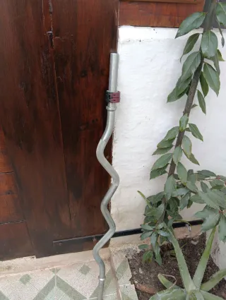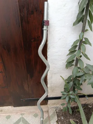 Barra de gimnasio de aproximadamente 1,80 metros de longitud. Está en buen estado, aunque presenta algunas marcas de uso. - Ideal para entrenamiento de fuerza en casa. - Fabricada en acero cromado. Peso: aprox. 10kg