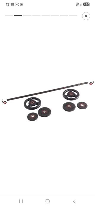 Set de pesas para entrenamiento en casa. Incluye barra y discos. - Peso total: 10 kg. - Barra de pesas. - Discos de diferentes pesos. Precio negociable