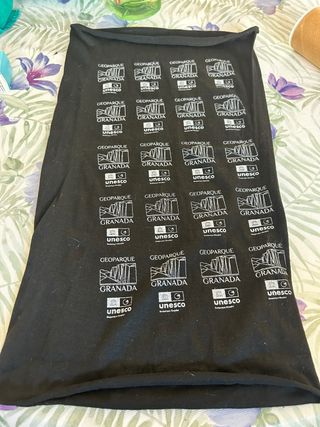 Braga de cuello con diseño repetido de Geoparque Granada y logo de UNESCO. - Diseño Geoparque Granada. - Logo UNESCO.