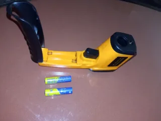 Termómetro láser digital de color amarillo y negro. Ideal para mediciones rápidas. Funciona perfectamente. - Diseño ergonómico con mango. - Compartimento para baterías.