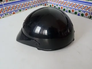 Casco de moto de color negro brillante. Diámetro interior 56 centímetros. - Diseño con visera. - Aberturas de ventilación. Casco de moto vintage, ideal para coleccionistas. Para exposiciones y eventos de motos clásicas. Está en buen estado funcional y de aspecto, aunque presenta algunos pequeños signos de uso.
