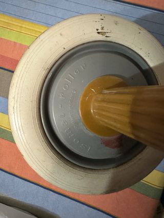 Este rodillo abdominal Isomet es un accesorio para el ejercicio. - Rueda de color blanco. - Mangos de color marrón.