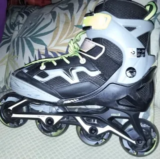 Patines en línea Oxelo en color negro y gris, talla 35-38. - Ruedas de 70 mm y 80A. - Cierre con cordones, velcro y hebilla. También protecciones completas talla M. Apenas usados Patines 50€ Protecciones 20€ Las dos juntas 60€