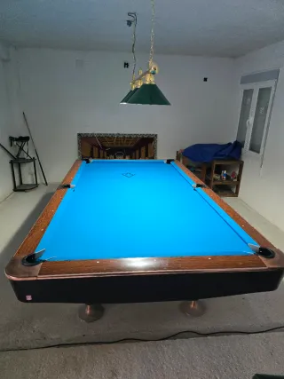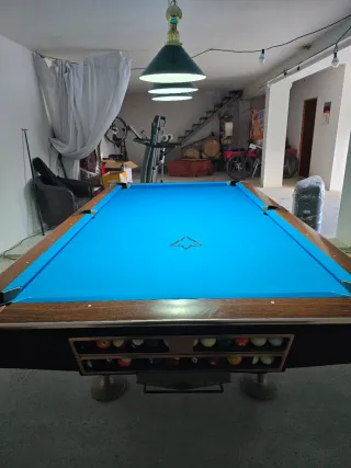 Mesa de billar de 9 pies - Tapete SIMONIS 860 azul tournament con muy poco uso - Patas ajustables para nivelación - Troneras reducidas artesanalmente para mejorar en la precision, se pueden quitar sin problema. -Bandas en perfecto estado