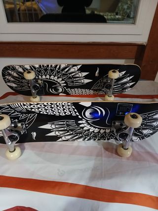Dos patinetes con un diseño llamativo de ave en blanco y negro. Están en excelente estado, casi nuevos. Se han usado como estanterias. El precio es de cada uno, si compras los 2 podemos discutir una rebaja - Diseño de ave en blanco y negro. - Ruedas de color crema.