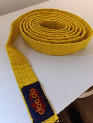 Cinturón de artes marciales de color amarillo con etiqueta de la marca Daedo. - Color: Amarillo - Marca: JOE DO - Diseño: Confección resistente.