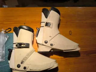 Botas de esquí de la marca Salomon. - Color blanco y negro. - Cierre con un unico gancho - Se calza cómodamente por detrás. - Muy lijeras -