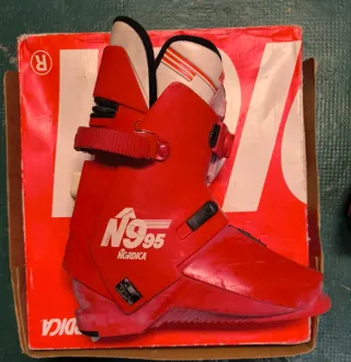 Bota de esquí Nordica N95 en color rojo. Diseñada para un ajuste preciso y rendimiento en la pista. En su momento fueron botas top de gama. Se calzan cómodamente por detras. Control de presion ajustable. En buen estado, poco uso Se venden parahacer sitio en trastero En su caja original - Talla 27.5. - Cierre de un solo gancho. - Modelo N95.