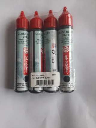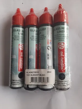 Pack de 4 tubos de pintura Delineador de Relieve para vidrio en color negro por 7€. - Marca: Talens Art Creation. - Modelo: 7001 Elegant Black. - Contenido: 28 ml por tubo.