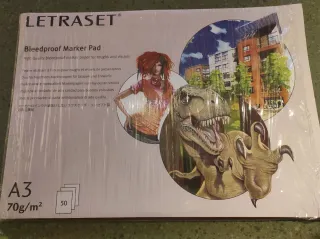 Bloc de papel Letraset A3 de alta calidad, ideal para bocetos y visuales. - 50 hojas de 70g/m². - Papel a prueba de sangrado para marcadores. - Formato A3.