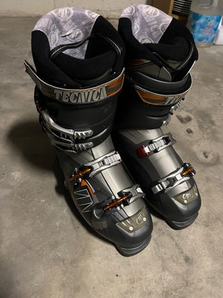 Botas de esquí de la marca Técnica Quedar i provar - Color negro con detalles en naranja y plateado. - Cierres de hebilla ajustables. - Lengüeta con logo de la marca. Talla 45 aprox